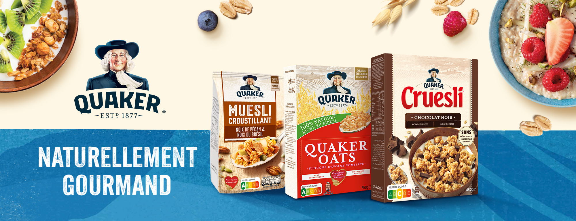 Depuis plus de 145 ans, QUAKER s’inspire de la richesse naturelle de l’avoine pour vous proposer un petit déjeuner de qualité et 100 % délicieux.